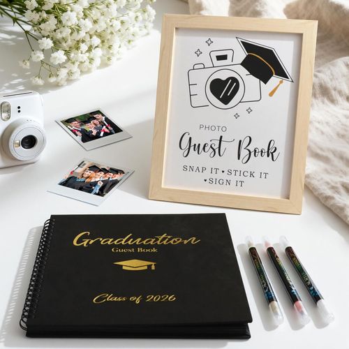 2026 Graduation Decorations 🎓make celebrations memorable! 30-page guest book, photo sign, and 3 markers for kindergarten, high school, or college parties 🎉📖🖊️.