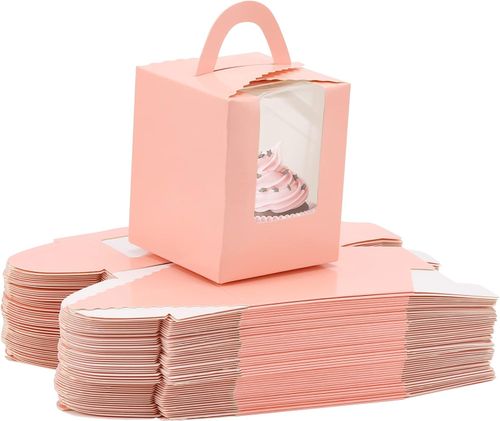 acDesign 100Pcs Cupcake Boxes 🧁🎀 – pink, individual containers with window, handle, and inserts! ✨Perfect for bakeries, parties, and sweet gift wrapping. 🎉🍰💝