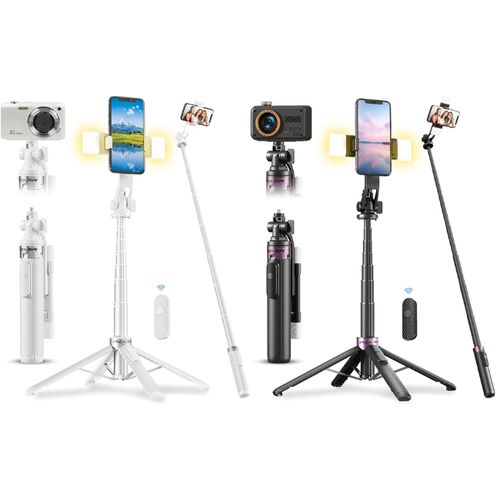 ACKIMA Selfie Stick Tripod provides perfect lighting for every shot 📸! This 53-inch stand dual fill lights and a wireless remote! 🤳✈️