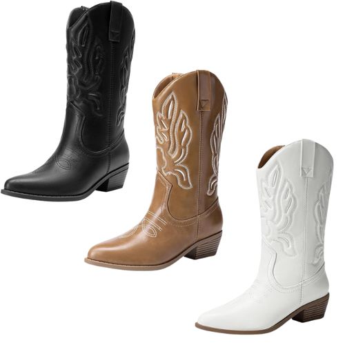 DREAM PAIRS Cowboy Boots bring classic western style to your wardrobe. Mid-calf design, embroidered details, and comfortable fit. 🤠👢