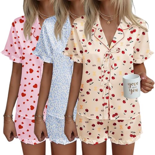 Ekouaer Satin Pajama Set, a silky short-sleeve duo perfect for elegant lounging. This set features a chic bow front, adjustable tie-up details, and a soft, breathable fit. 🎀🌙