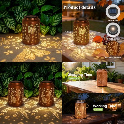 AiQDBAA Butterfly Solar Lights 🦋. Waterproof build, strong solar power, and lantern glow enhance outdoor spaces