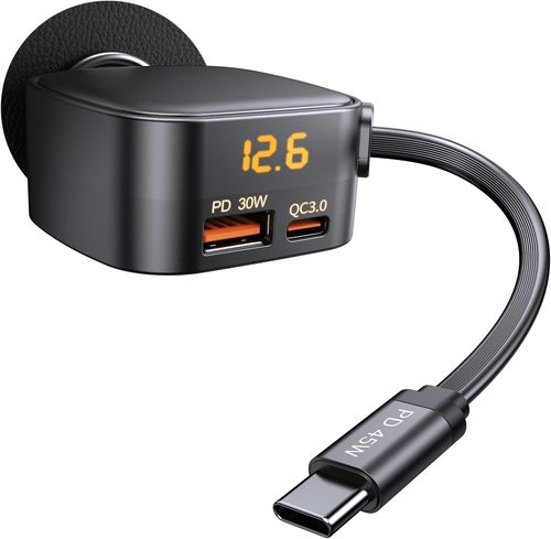 ANEXTIDE Retractable Car Charger powers devices on the go. 🚗⚡ 93W fast charging with USB-C, QC3.0 & PD 45W, voltage display for iPhone Android tablets. 📱🔌