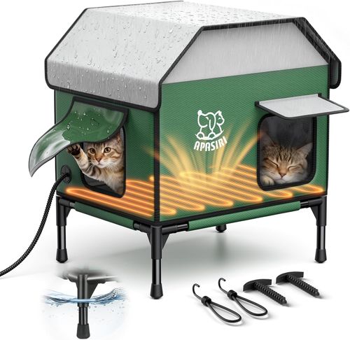 Apasiri Heated Outdoor Cat House 🏠 keeps furry friends warm and safe all winter. Insulated, weatherproof, and elevated for dry comfort 🐾.