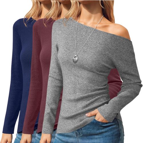 Arach&Cloz Wool Blend Sweaters offer chic fall style. Off-shoulder, ruched detail, slim fit cozy warmth. 🍂🧶