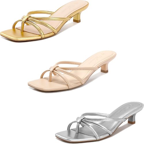 Athlefit Kitten Heels! 👠Square toe strappy design, low slip-on thong heels, perfect for chic casual and dressy looks! 💖