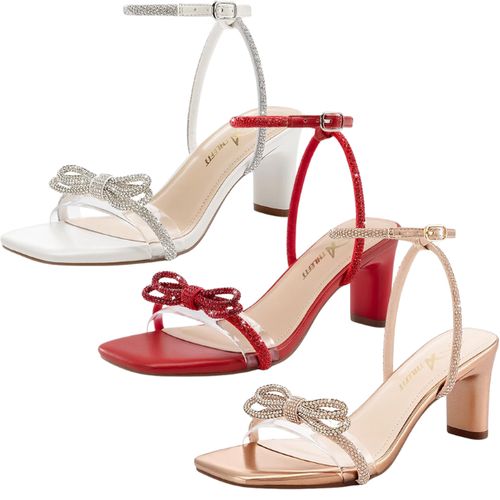 Athlefit Women's Rhinestone Bow Heels! 👠 Step into glam. Clear square toe, comfy block heel, perfect for weddings & parties! 💖