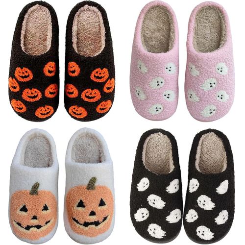Aucomfo Halloween Slippers keep your feet cozy and festive ๐ Plush fuzz, memory foam comfort, and cute pumpkin design ๐งก.
