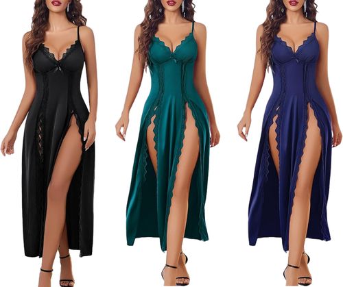 Avidlove Sexy Nightgown💖 brings elegant satin charm to bedtime! V-neck design, silky smooth fabric, and flirty side split for a flattering, comfy fit 🌙💃💕