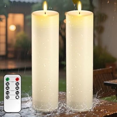 BangJiaju Flameless Candles create a warm, romantic glow indoors or outdoors. 🕯️ Remote timer, waterproof, flickering LED, perfect for patio, porch, Valentine décor. 💕🏡