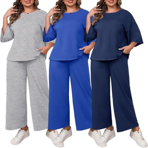 Beautife Plus Size 2 Piece Outfits πΈπ Comfortable 3/4 sleeve tops with wide-leg pants, perfect for loungewear or pajamas. Soft, stylish, and cozy fit ποΈπ.