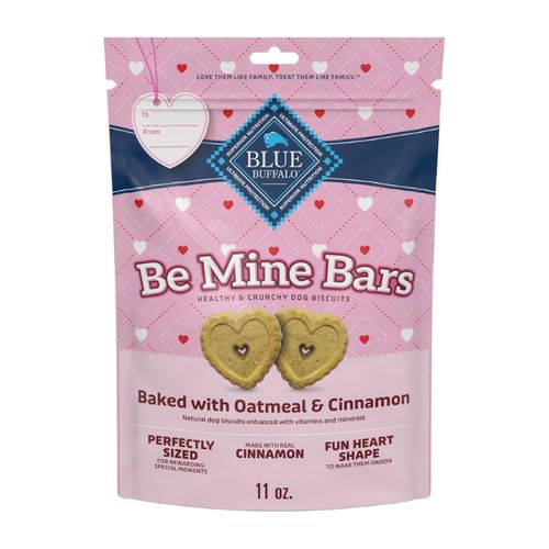 Blue Buffalo Be Mine Bars. 🐾 These heart-shaped biscuits contain natural ingredients, crunchy oatmeal, and sweet cinnamon. 🐶