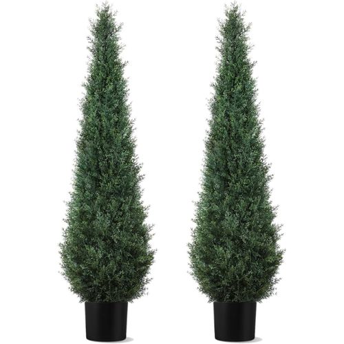 Lush greenery, zero fuss! 🌿 BUZIGUBY 5FT Artificial Cedar Topiary Trees—perfect for your porch, patio, or front door. No watering, all year beauty! ✅