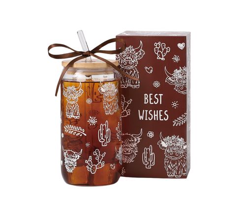 Celebloom Highland Cow Glass Cup! 🐮 Adds adorable charm to every drink. 🥤 16oz tumbler, cute cow print, perfect gift for coffee lovers and friends! 💖