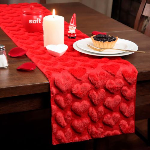 ChezMax Valentine’s Day Heart Table Runner! 🍽️ Adds instant romance with soft faux fur, cozy plush texture, and eye-catching 3D hearts! ❤️