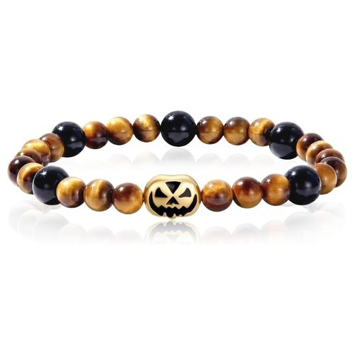 Cicy Bell Halloween Bracelets for Women add spooky-chic style 🎃💀 8MM natural gemstones, stretch bead design, pumpkin and skull charms for unisex wear