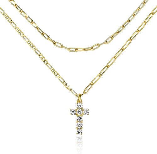 Cicy Bell Layered Necklace adds sparkle and charm to any outfit ✨. Features 18k gold plating, cubic zirconia accents, and vintage-inspired design 💎.