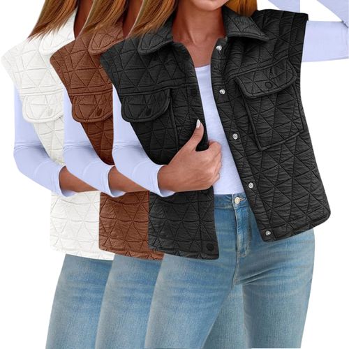 Cicy Bell Womens Lightweight Quilted Cropped Vest. Sleeveless cargo style, button down front, loose fit with pockets for fall layering 🧥