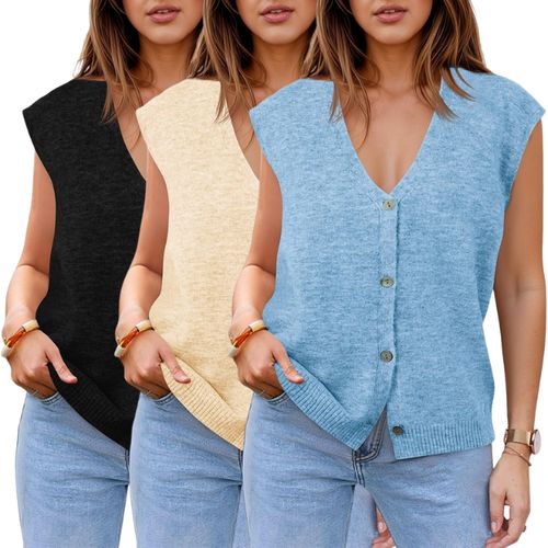 Cicy Bell V Neck Sweater Vest Casual Button Down Knit Vest Outerwear Sleeveless Trendy Cardigans
