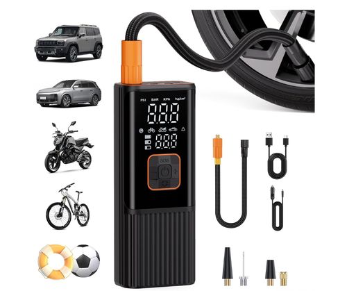 CKWUE Tire Inflator Portable Air Compressor – 180 PSI electric air pump for cars, bikes, and more ⚡💨 Inflates 6X faster, built-in pressure gauge, compact and portable, perfect for tires, sports balls, and emergency use 🛞🏍️⚽