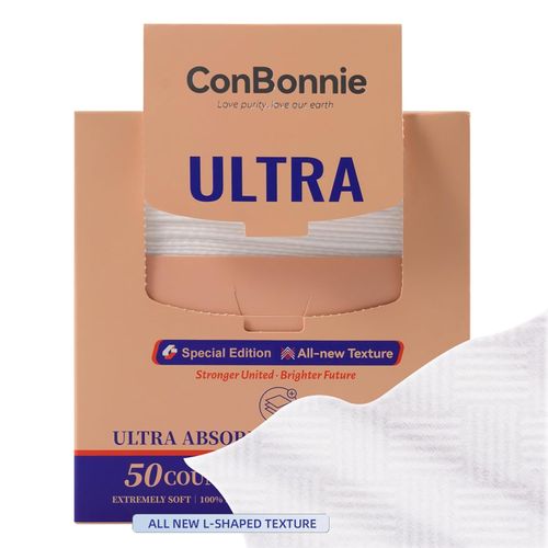 Conbonnie Clean Face Towels XL make skincare cleaner and easier. Extra-large size, textured L-shape, and disposable design for fresh, gentle cleansing. 🧼🩵