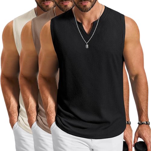 COOFANDY Casual Tank Top offers a breathable and stylish choice for summer beach outings! 🏖️ This sleeveless V-neck shirt a unique knit jacquard texture, lightweight fabric, and a comfortable relaxed fit! 👕