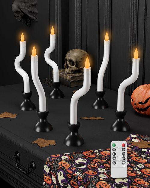 Light up your Halloween! 🎃 COOLWUFAN LED Ghost Candles Flicker just like real flames – safe, spooky, and remote-ready! 🕯️