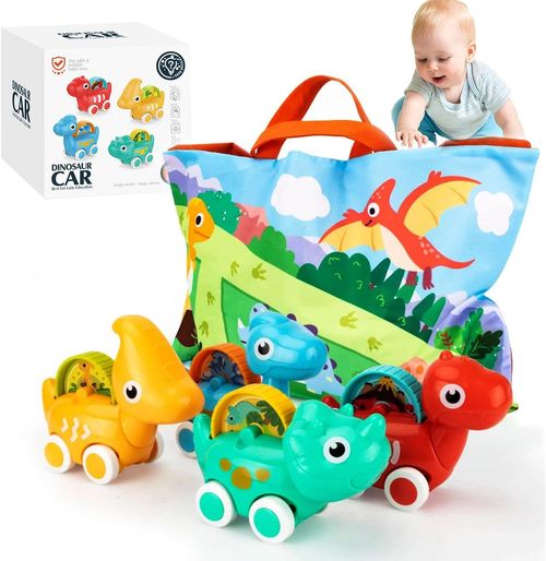 COVTOY 1 Year Old Boy Gift vehicle dinosaur car toy set delights toddlers. Includes playmat, storage bag, four cars 🦖🚗
