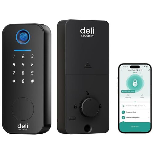 deli SECURITY Smart Deadbolts Lock delivers modern keyless security 🛡️🔒 Fingerprint access, app control, touchscreen keypad for easy installation and IP65 🔑📱
