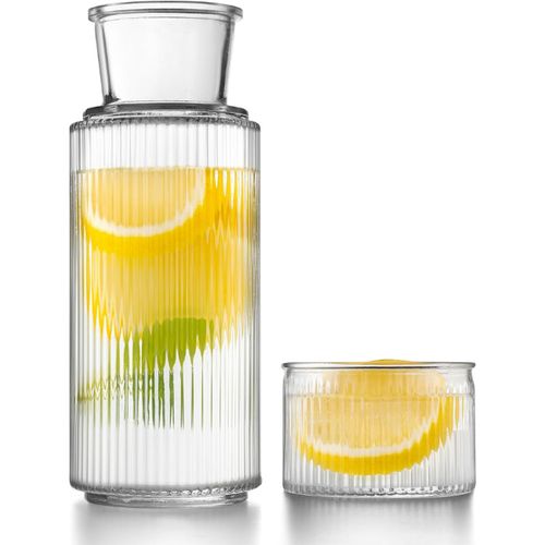 DmmyAlzx Bedside Water Carafe & Glass Set! 💧 Perfect for water or mouthwash. Sleek design for any room. 🌙