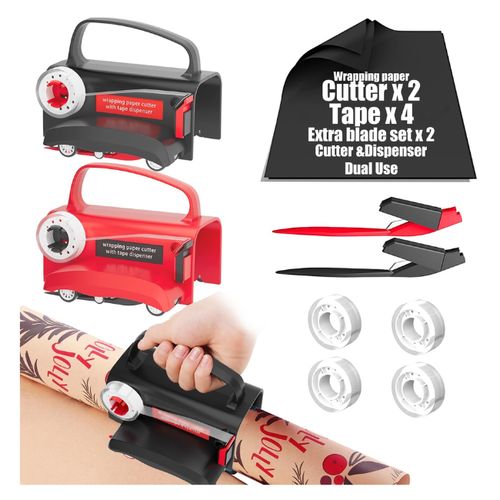 Doitsf 2-Pack Wrapping Paper Cutter & Tape Dispenser makes gift wrapping easier 🎁✂️ Straight sliding tool, safe cuts, includes 4 tapes + extra blades for holidays 🎄