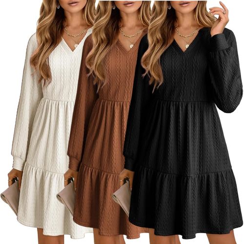 Dokotoo Fall Dresses for 2025 bring effortless seasonal charm 🍂👗 Long sleeves, V-neck, textured fabric with tiered ruffle A-line mini babydoll style
