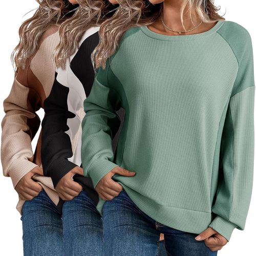 Dokotoo Oversized Sweatshirt! 🍂 Waffle knit texture, color block design, and relaxed high-low fit for all-day comfort! 💖