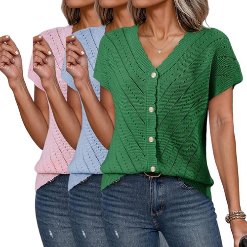 Dokotoo Short Sleeve Sweater Cardigan adds polished 2025 style 👚 V-neck, cap sleeves, button-down design with lightweight comfort for everyday wear 💼🌸