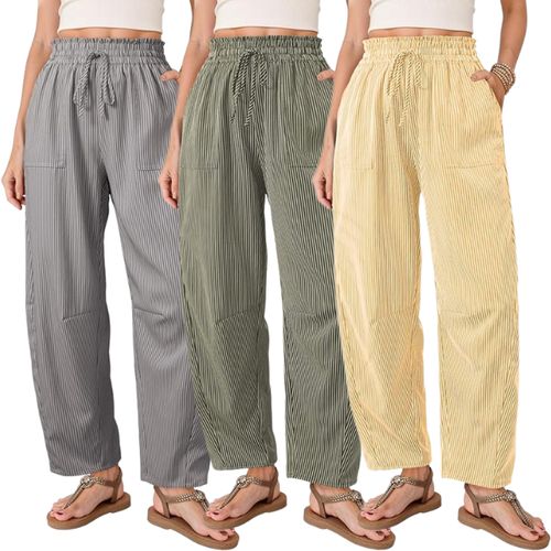 Dokotoo Striped Barrel Casual Pants! High-waisted fit, elastic drawstring waist, and relaxed striped style for effortless wear! 💖