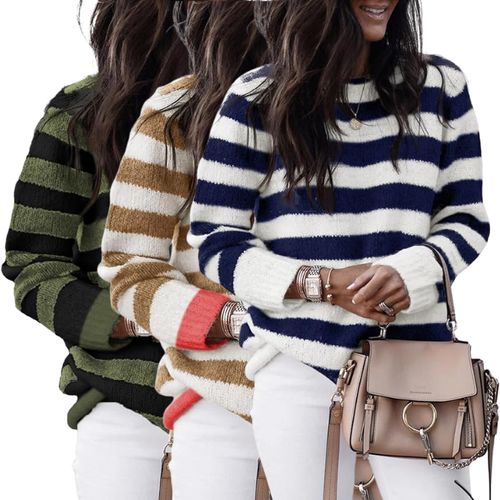Dokotoo Sweaters for 2025 a cute striped color-block crewneck design ๐งถ. Soft knit, warm feel, and perfect for fall and winter outfits ๐โ๏ธ๐.