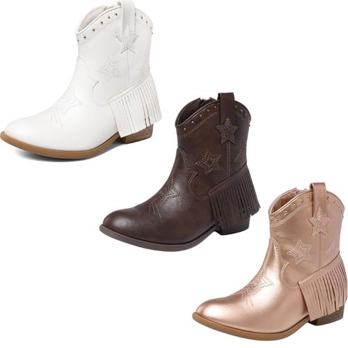DREAM PAIRS Cowgirl Cowboy Ankle Western Boots add playful western style 🤠👢 Side zipper, tassel detail, comfy riding fit kids