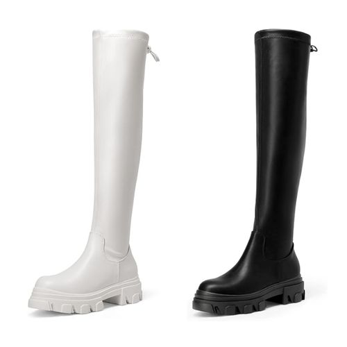 DREAM PAIRS Over-the-Knee Platform Boots 👢 bring bold, stylish flair to fall outfits.Stretchy fit, chunky lug sole, and comfortable thigh-high design 🖤🍂💫.