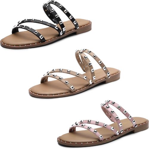 DREAM PAIRS Rhinestone Slide Sandals 👡 Clear studded design with rhinestones, slip-on open-toe flat sandals—perfect for casual outings, beach days, or summer outfits 💖☀️.