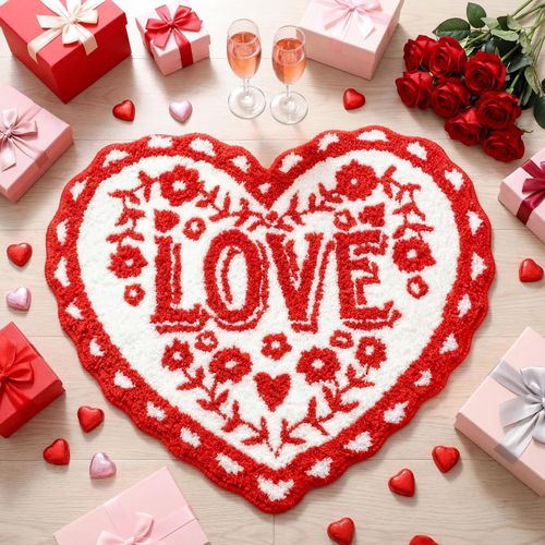 Dunzy Valentine's Day Heart Tufted Bath Rug! ❤️ Soft, absorbent, and super cute in romantic red! 💖