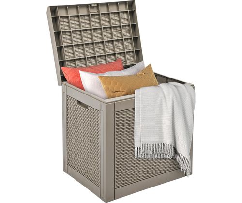 DWVO 32 Gallon Resin Rattan Storage Box 📦 This brown deck box includes a durable resin construction that mimics the look of natural rattan, making it a stylish addition to any patio, balcony, or garden. 🌿