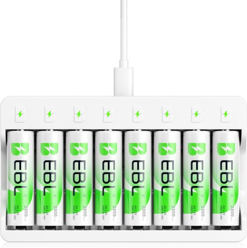EBL Rechargeable AA Batteries 8 Pack! 🔋⚡ Deliver reliable long-lasting power! High-capacity 2800mAh, includes 8-bay USB charger, compatible with AA AAA devices.!