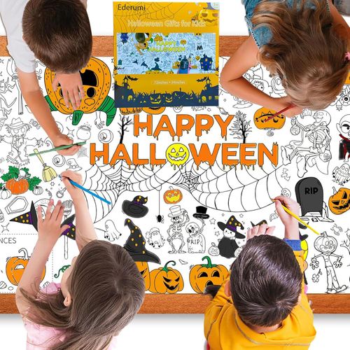 EDERUMI Halloween Giant Coloring Tablecloth Poster 🎃🖍️ 👻Large 72x32" design, perfect for group coloring, crafts, and festive Halloween activities! 🧡🕸️