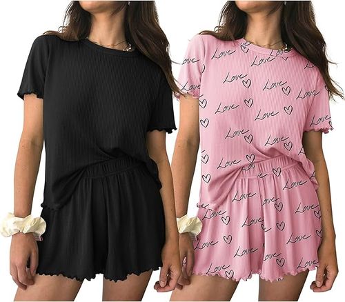 Ekouaer 2 Packs Pajama Set 💤✨ keeps you comfy and cute for sleep or lounging. Soft fabric, short sleeve top, and shorts with pockets for easy everyday comfort 🌙.