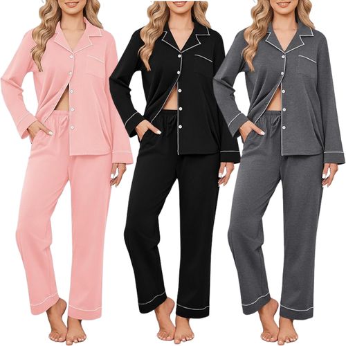 Ekouaer Cotton Pajama Set 🌙💖 keeps you comfy all night! Soft breathable fabric, button-down top, and relaxed lounge pants 🛏️.