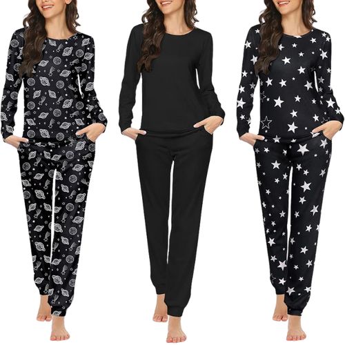 Ekouaer Jogger Pajama Set 🛌💖 long-sleeve, round-neck sleepwear. Soft, comfy lounge set with pockets—perfect for cozy nights and relaxing at home 🌙👚.