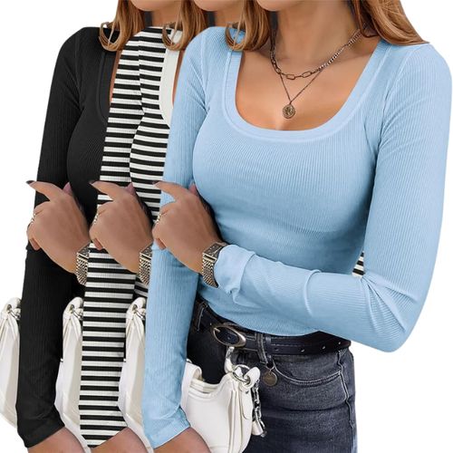 Ekouaer Long Sleeve Shirts combine style and comfort. 👚 Square neck, slim fit, ribbed thermal—perfect for layering and everyday wear.
