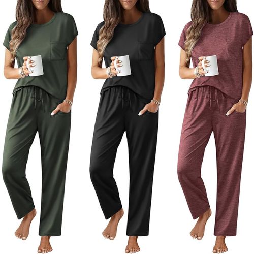 Ekouaer Pajama Set! 🌙 Cap sleeve top, long pants with pockets, and breathable 2-piece lounge design for restful nights! 💖