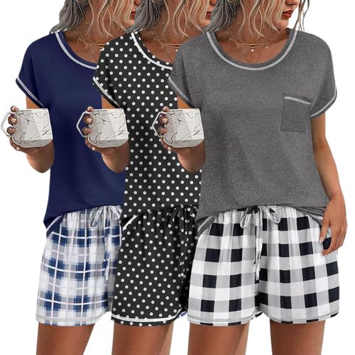 Ekouaer Pajama Sets 2 Piece short sleeve lounge sleepwear 🛌 Pockets, lightweight fabric, relaxed fit for cozy comfort 💗
