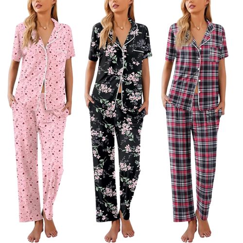 Ekouaer Pajamas Set! 🌙 This soft PJs set includes a button-down, short-sleeve top and long pants, available in sizes S-XXL. 👚👖